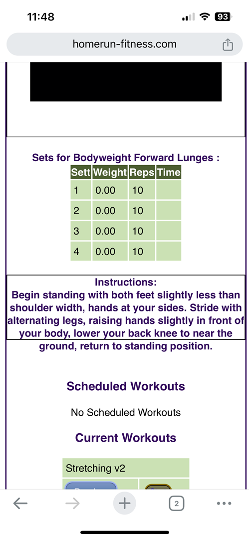 Tap on Workouts to see your Scheduled and Current Workouts. If your Trainer has set up a workout schedule for you you will see it under Scheduled Workouts. Current Workouts will be a list of all workouts you can select from if you wish to do a particular workout that your Trainer has designed for you. Tap Preview to a list of exercises, reps, times, weights, etc. as per the workout plan. When you tap Start, your workout will immediately start. We recommend using the preview to have a quick glance, especially to check out the first exercise on the workout and get your equipment set up, even if that just means tying on your shoes for the stretching. Then tap Start to begin.