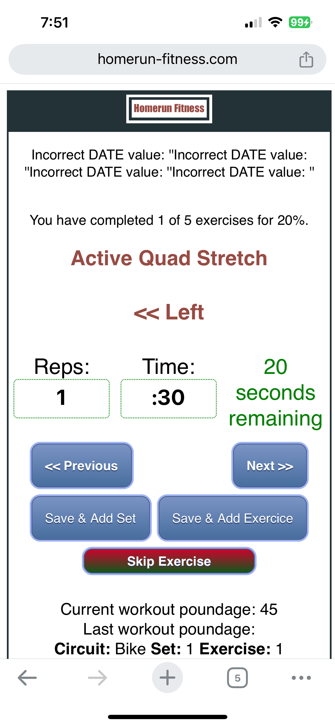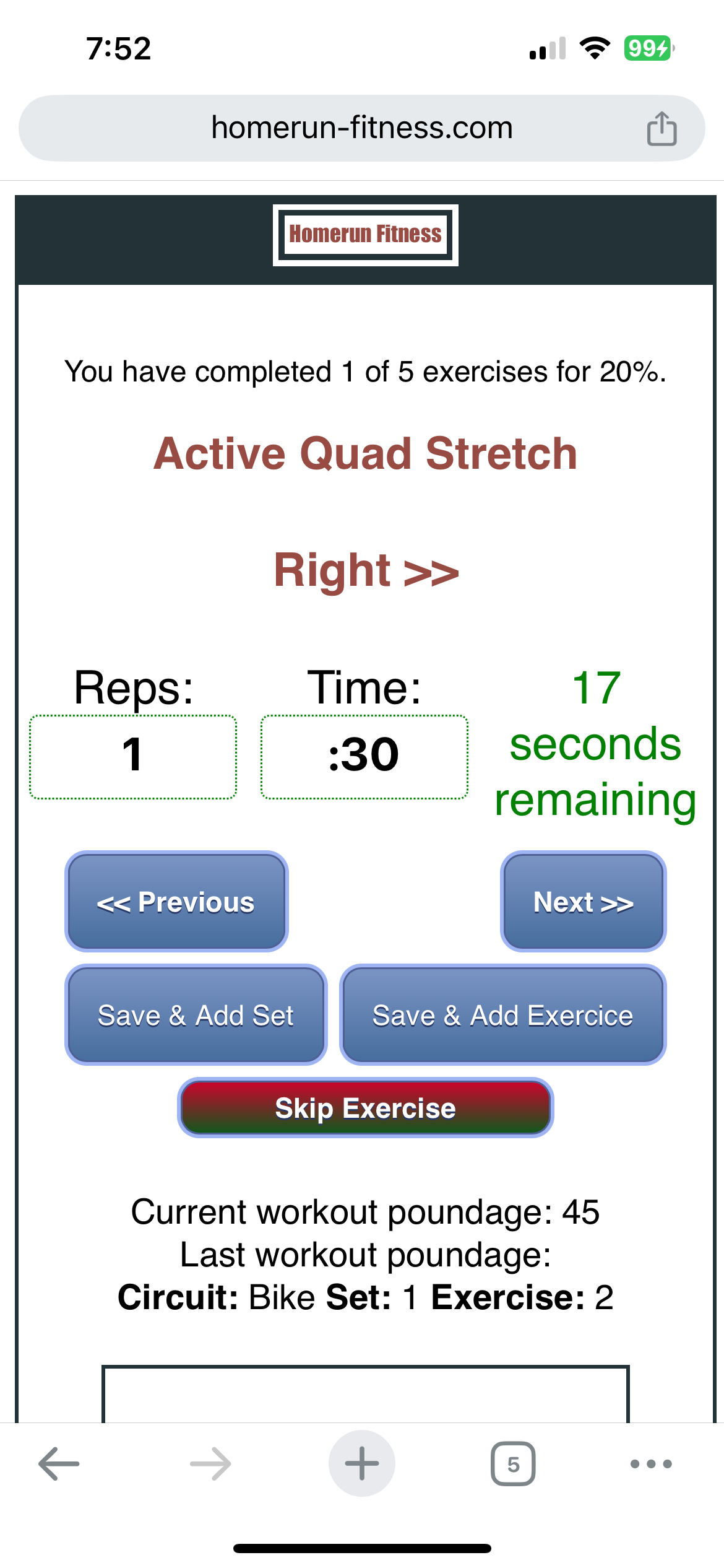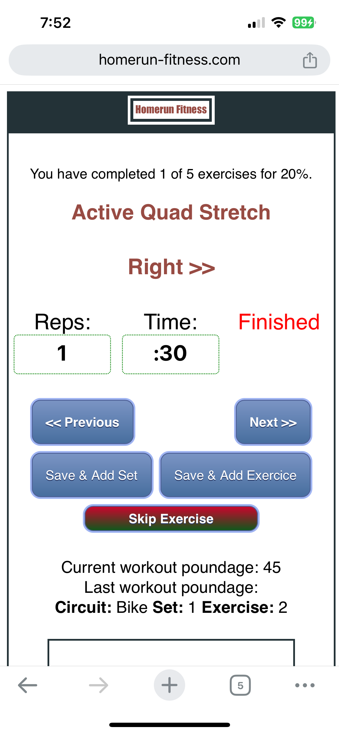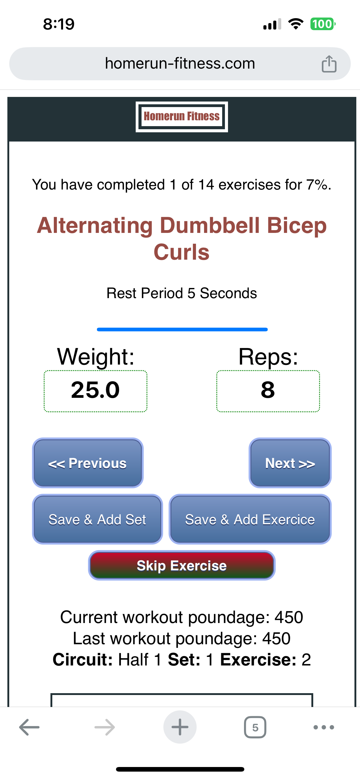- Skip Exercise - skips the current exercise in todays workout, recording as 0 reps and 0 weight.