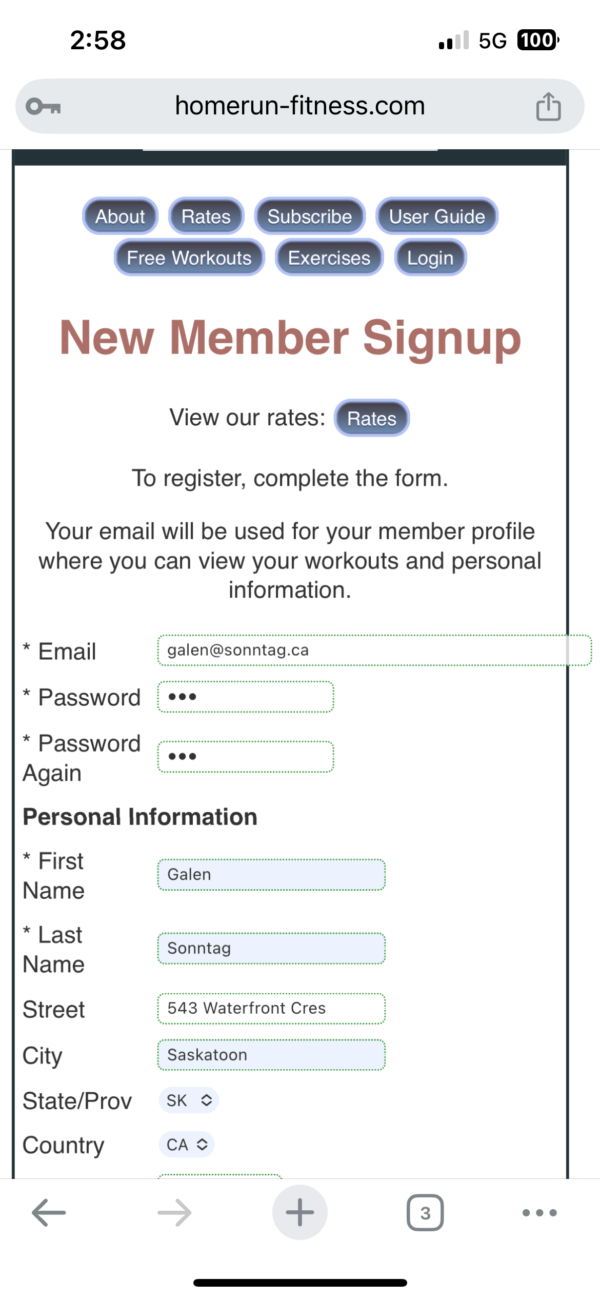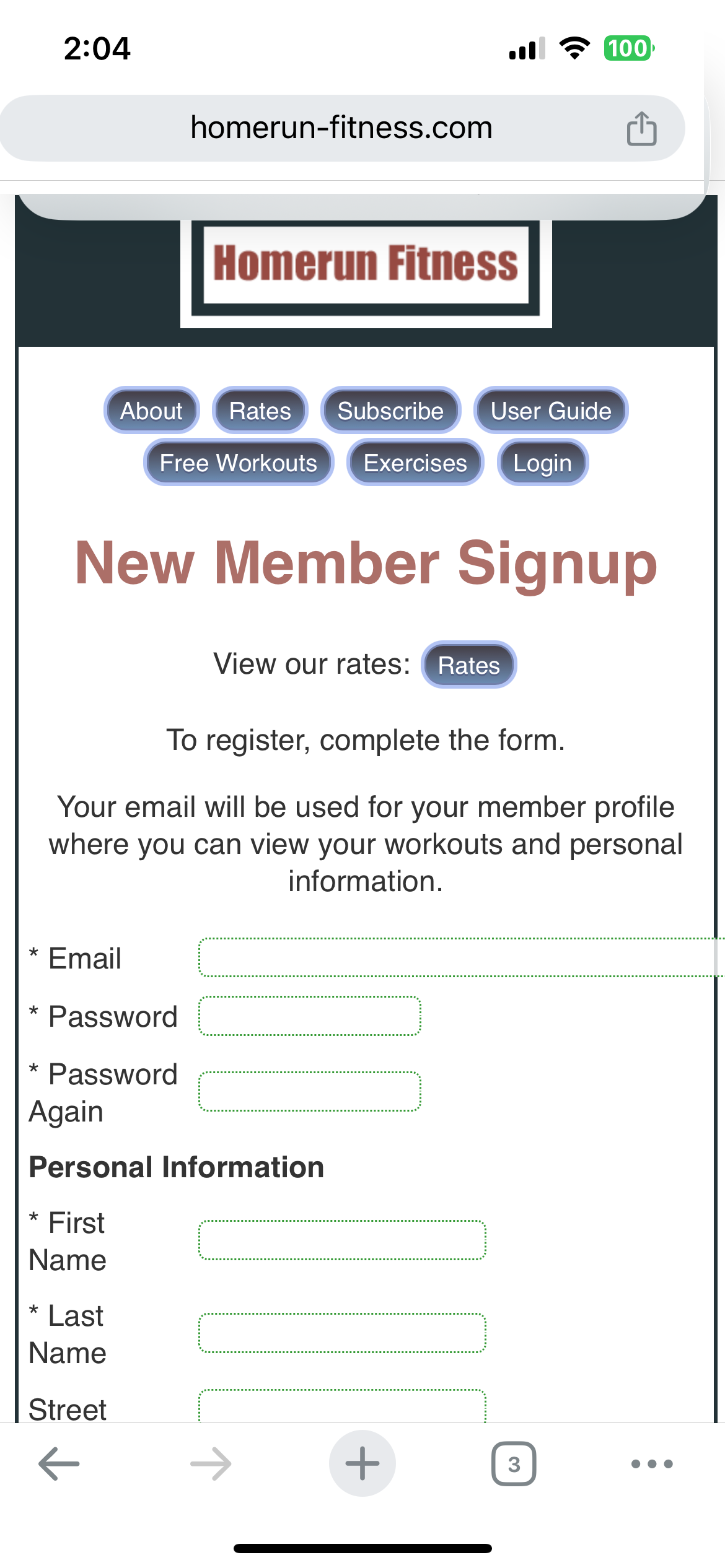 Your First Step will be to compelete the New Member Signup form. Please ensure to select your Timezone and Notification Time which is the scheduled time of day that Homerun Fitness will send you an email notification on date which you have a workout scheduled.