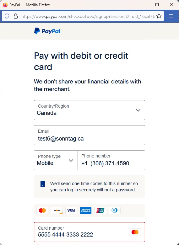 Provide your payment details. (Note: we have provided an invalid card number here for demonstration purposes only.)