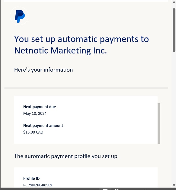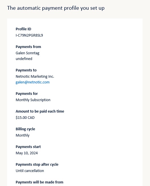After you have completed your subscription, you will receive an email with subscription details similar to the following.