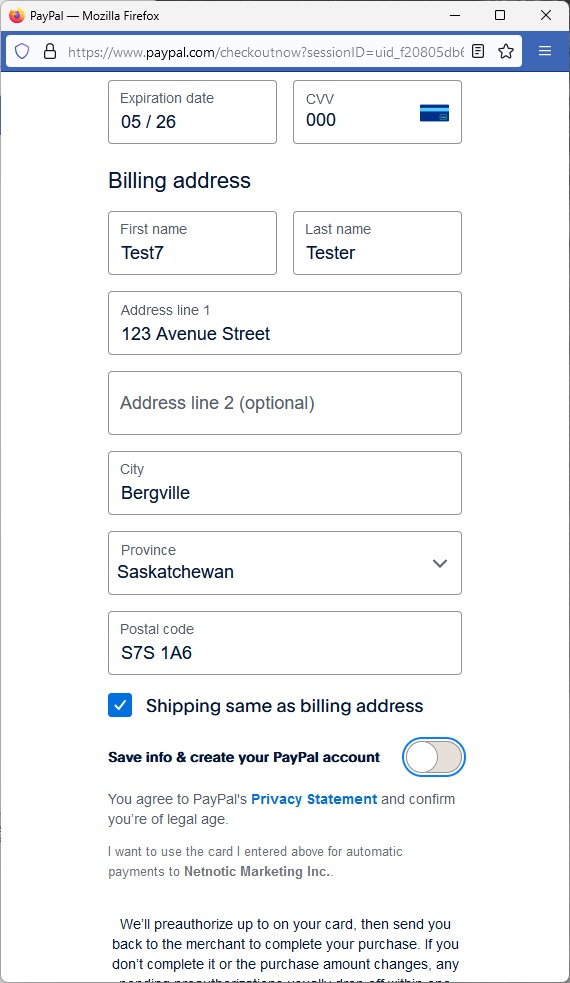 If you do not want to create a PayPal account at this time smple click off the switch Save info & create you PayPal account.